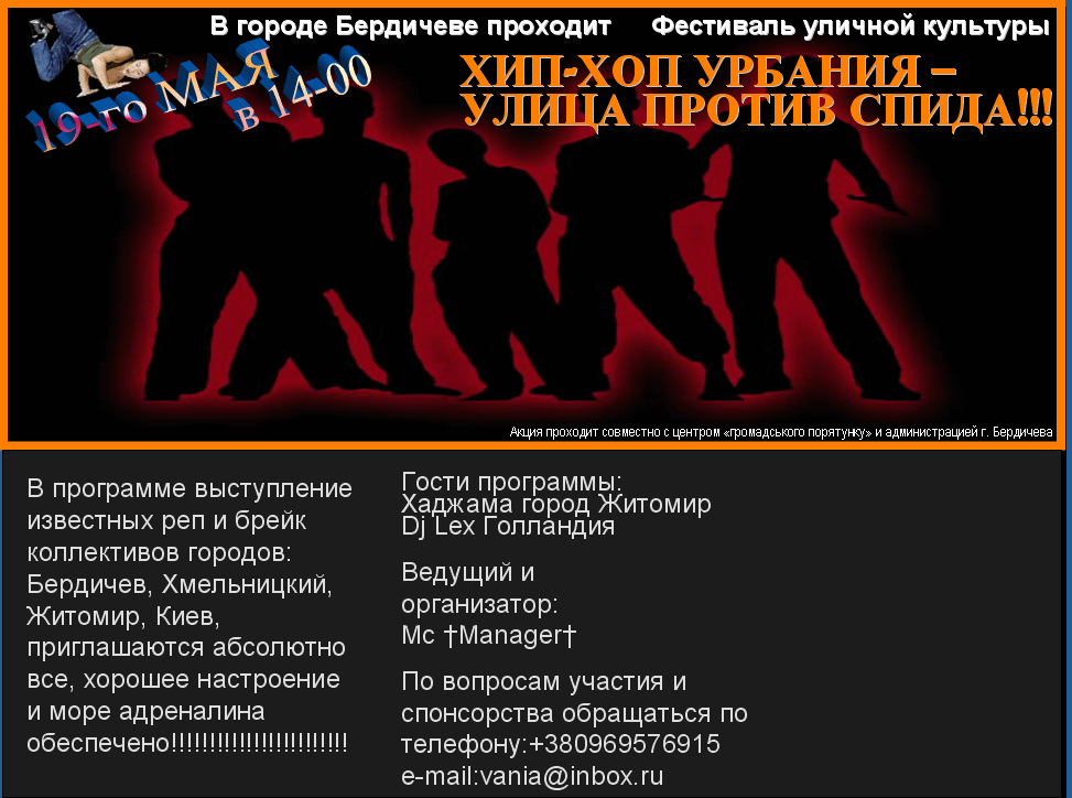 Случайно нарыл афишу, в которой использовали мою работу. Это обработанная фотка с нами 5 танцорами, которая делалась на наш старюююющий сайт. Приятно, конечно, что встретил свою работу в чужом обьявлении, но так её исковеркать... Кх-кх..